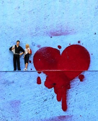 In ihren Arbeiten inszeniert sie selbstfotografierte Bilder, in denen Miniaturfiguren inmitten von urbanen Kulissen, wie bunten Graffitis oder lebendigen Straßenszenen, zum Leben erwachen. Zwei Figuren, die zusammensitzen,